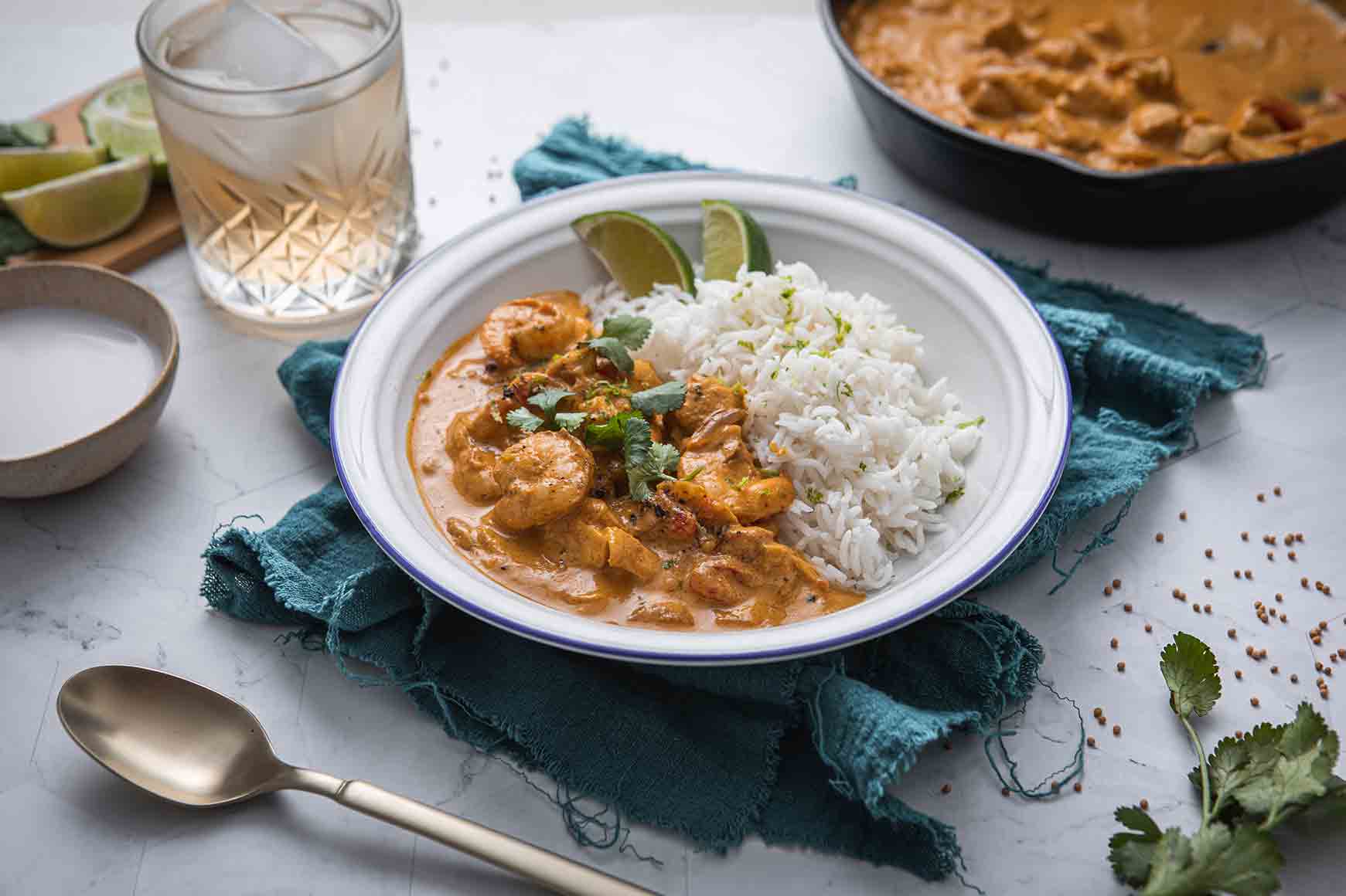 Curry de pescado y camarones